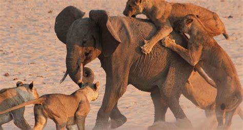 elephant lion attack surviving lions work